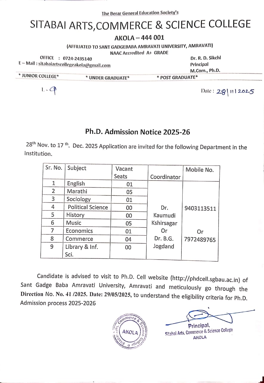 It is one of the oldest in Vidarbha, bringing the stream of knowledge to this part of India since pre-Independence period. From the very beginning this college has been playing a major role in providing quality education to the weaker sections and the needy citizens of this region so that they may come up as economically and socially capable class of society.
